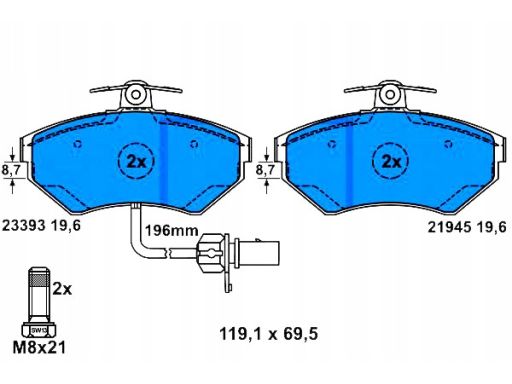 KLOCEK HAMULCOWY KPL. PRZÓD (ZE ŚRUBAMI PROWADZĄCYMI ZACISKU HAMULCOWEGO), PASUJE DO: AUDI A4 B5, A4 B6, A4 B7, SEAT EXEO, EXEO ST, VW PASSAT B5 1.6-3.2 11.94-05.13