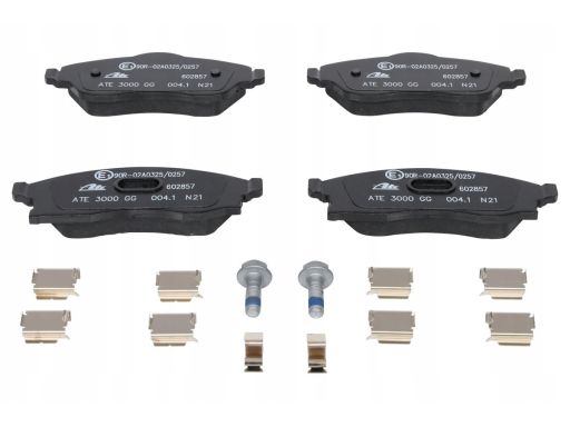 KLOCEK HAMULCOWY KPL. PRZÓD (Z DODATKAMI, ZE ŚRUBAMI PROWADZĄCYMI ZACISKU HAMULCOWEGO), PASUJE DO: OPEL COMBO TOUR, COMBO/MINIVAN, CORSA C, CORSA C/HATCHBACK, MERIVA A, TIGRA 1.0-1.8 09.00-