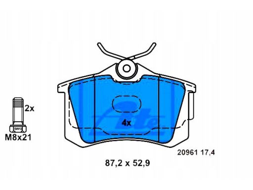 KLOCEK HAMULCOWY KPL. TYŁ (ZE ŚRUBAMI PROWADZĄCYMI ZACISKU HAMULCOWEGO), PASUJE DO: AUDI A2, RENAULT MEGANE II, THALIA II, TWINGO II, SEAT CORDOBA, IBIZA III, IBIZA IV, IBIZA IV SC 1.2-2.0 12.95-
