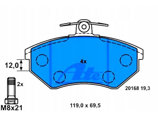 KLOCEK HAMULCOWY KPL. PRZÓD (ZE ŚRUBAMI PROWADZĄCYMI ZACISKU HAMULCOWEGO), PASUJE DO: AUDI 100 C3, SEAT CORDOBA, CORDOBA VARIO, CORDOBA VARIO/KOMBI, IBIZA II, INCA, TOLEDO I 1.0-2.9 10.86-01.04