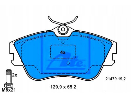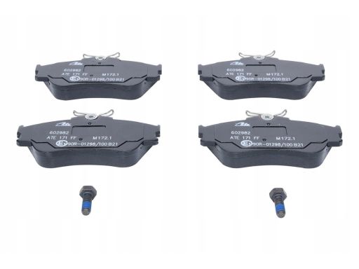 KLOCEK HAMULCOWY KPL. PRZÓD (ZE ŚRUBAMI PROWADZĄCYMI ZACISKU HAMULCOWEGO), PASUJE DO: VW TRANSPORTER T4 1.9D-2.8 07.90-06.03