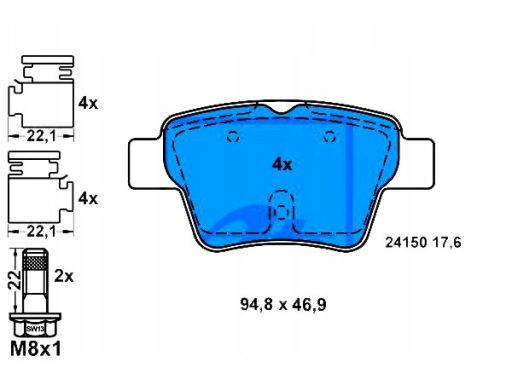 KLOCEK HAMULCOWY KPL. TYŁ (Z DODATKAMI, ZE ŚRUBAMI PROWADZĄCYMI ZACISKU HAMULCOWEGO), PASUJE DO: CITROEN C4, C4 I, PEUGEOT 207, 207/HATCHBACK, 307, 307/KOMBI, 405 I 1.4-2.0D 07.88-01.15