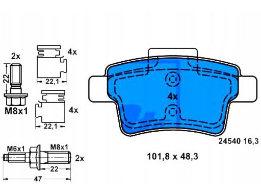 KLOCEK HAMULCOWY KPL. TYŁ (Z DODATKAMI, ZE ŚRUBAMI PROWADZĄCYMI ZACISKU HAMULCOWEGO), PASUJE DO: CITROEN C4 GRAND PICASSO I, C4 PICASSO I 1.6-2.0D 10.06-12.13