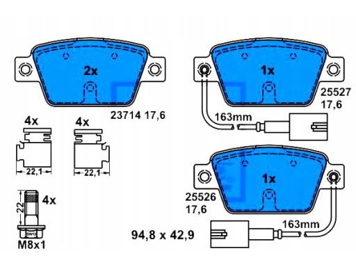 KLOCEK HAMULCOWY KPL. TYŁ , PASUJE DO: ALFA ROMEO MITO, FIAT BRAVO II, MULTIPLA, STILO, LANCIA DELTA III 0.9-2.4 04.99-10.18