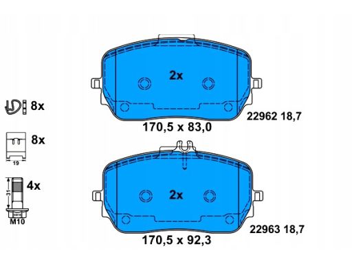 KLOCEK HAMULCOWY KPL. PRZÓD (Z DODATKAMI, ZE ŚRUBAMI PROWADZĄCYMI ZACISKU HAMULCOWEGO), PASUJE DO: MERCEDES GLE (C167), GLE (V167), GLS (X167) 2.0D-4.0H 10.18-