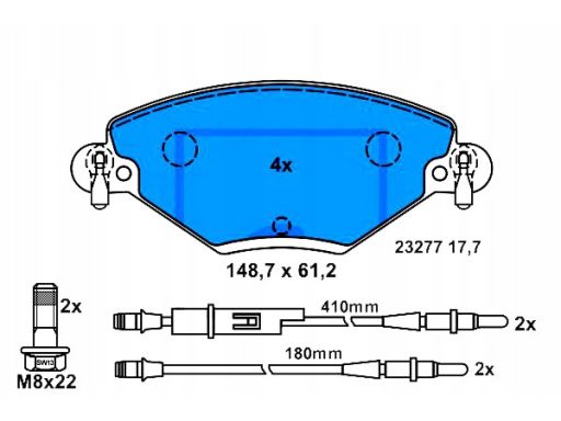 KLOCEK HAMULCOWY KPL. PRZÓD (ZE ŚRUBAMI PROWADZĄCYMI ZACISKU HAMULCOWEGO), PASUJE DO: CITROEN C5 I, C5 II, C5 II/KOMBI, C5 I/KOMBI 1.6D-2.0D 03.01-08.08
