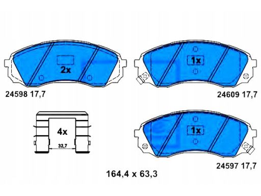 KLOCEK HAMULCOWY KPL. PRZÓD (Z DODATKAMI), PASUJE DO: HYUNDAI H-1 CARGO, H-1 TRAVEL, KIA CARNIVAL III, TOYOTA PROACE, PROACE VERSO 2.0D-2.9D 04.06-