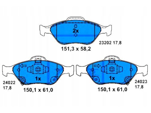 KLOCEK HAMULCOWY KPL. PRZÓD , PASUJE DO: DAIHATSU CHARADE VIII, GREAT WALL VOLEEX C20R, TOYOTA YARIS, YARIS / VIOS, YARIS/HATCHBACK 1.0-1.5H 08.05-