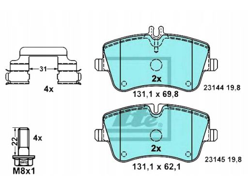 KLOCEK HAMULCOWY KPL. CERAMICZNY PRZÓD (Z DODATKAMI, ZE ŚRUBAMI PROWADZĄCYMI ZACISKU HAMULCOWEGO), PASUJE DO: MERCEDES C (CL203), C T-MODEL (S203), C (W203), CLC (CL203) 1.6-2.2D 05.00-06.11
