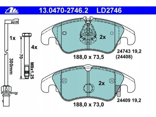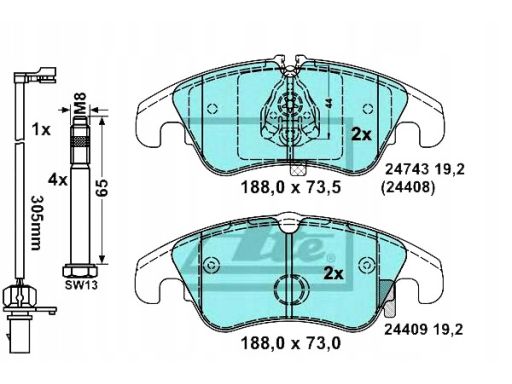 KLOCEK HAMULCOWY KPL. CERAMICZNY PRZÓD (Z DODATKAMI, ZE ŚRUBAMI PROWADZĄCYMI ZACISKU HAMULCOWEGO), PASUJE DO: AUDI A4 ALLROAD B8, A4 B8, A5 1.8-3.2 06.07-01.17