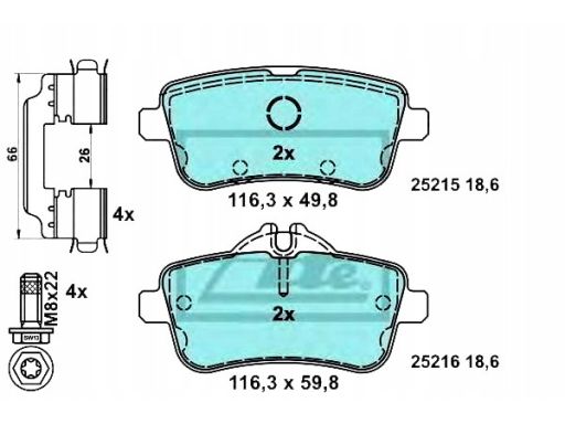 KLOCEK HAMULCOWY KPL. CERAMICZNY TYŁ (Z DODATKAMI, ZE ŚRUBAMI PROWADZĄCYMI ZACISKU HAMULCOWEGO), PASUJE DO: MERCEDES GL (X166), GLE (C292), GLE (W166), GLS (X166), M (W166) 2.2D-5.5 06.11-10.19