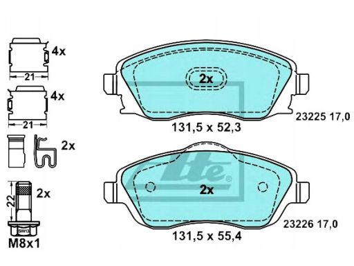 KLOCEK HAMULCOWY KPL. CERAMICZNY PRZÓD , PASUJE DO: OPEL COMBO TOUR, COMBO/MINIVAN, CORSA C, CORSA C/HATCHBACK, MERIVA A, TIGRA 1.0-1.8 09.00-