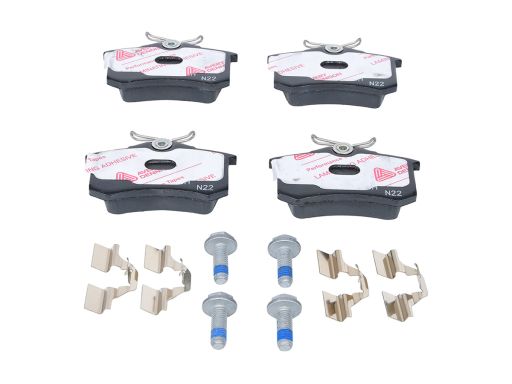 KLOCEK HAMULCOWY KPL. CERAMICZNY TYŁ (Z DODATKAMI, ZE ŚRUBAMI PROWADZĄCYMI ZACISKU HAMULCOWEGO), PASUJE DO: AUDI A2, A3, TT, RENAULT MEGANE II, THALIA II, TWINGO II, SEAT AROSA 1.0-3.2 05.86-