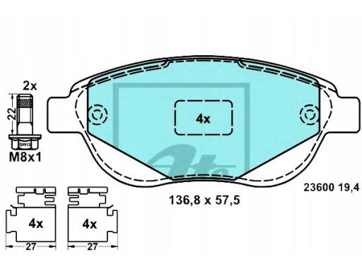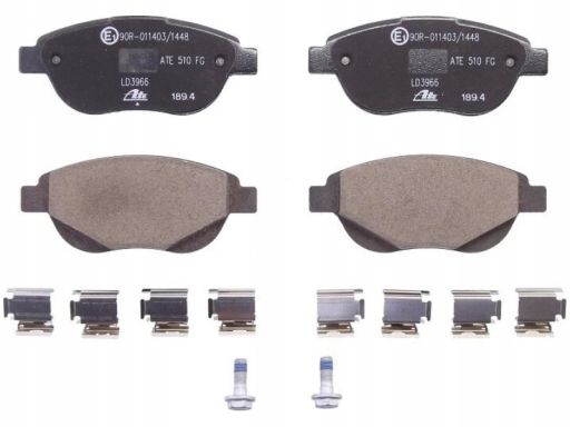 KLOCEK HAMULCOWY KPL. CERAMICZNY PRZÓD (Z DODATKAMI, ZE ŚRUBAMI PROWADZĄCYMI ZACISKU HAMULCOWEGO), PASUJE DO: CITROEN C3 I, C4, C4 I, XSARA, PEUGEOT 1007, 206, 207, 207/HATCHBACK 1.4-2.0D 02.98-