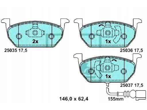 KLOCEK HAMULCOWY KPL. CERAMICZNY PRZÓD , PASUJE DO: AUDI A3, SEAT LEON, LEON SC, LEON ST, LEON ST/KOMBI, LEON/HATCHBACK, SKODA OCTAVIA III, SCALA, VW GOLF ALLTRACK VII 1.0-2.0D 04.12-