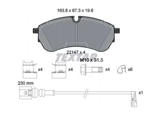KLOCEK HAMULCOWY KPL. PRZÓD (Z DODATKAMI, ZE ŚRUBAMI PROWADZĄCYMI ZACISKU HAMULCOWEGO), PASUJE DO: VW MULTIVAN T7 1.4H-2.0D 08.21-