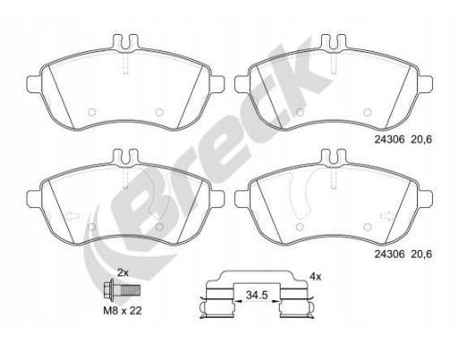 KLOCEK HAMULCOWY KPL. PRZÓD (Z DODATKAMI, ZE ŚRUBAMI PROWADZĄCYMI ZACISKU HAMULCOWEGO), PASUJE DO: MERCEDES C (C204), C T-MODEL (S204), C (W204), E (A207), E (C207), E T-MODEL (S212) 1.6-3.0 01.07-