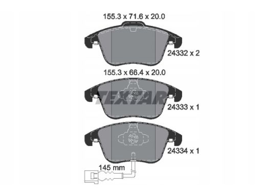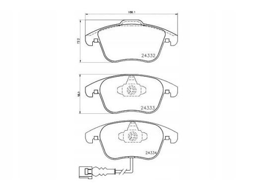 KLOCEK HAMULCOWY KPL. PRZÓD (ZE ZINTEGROWANYM CZUJNIKIEM ZUŻYCIA), PASUJE DO: AUDI Q3, SEAT ALHAMBRA, VW PASSAT B7, SHARAN, TIGUAN 1.4-2.0D 09.07-12.22