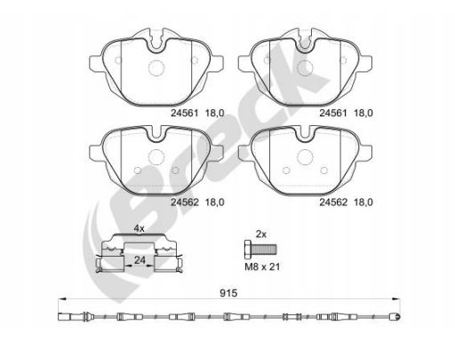 KLOCEK HAMULCOWY KPL. CERAMICZNY TYŁ (Z DODATKAMI, Z PODKŁADKĄ WYTŁUMIAJĄCĄ, ZE ŚRUBAMI PROWADZĄCYMI ZACISKU HAMULCOWEGO), PASUJE DO: BMW 5 (F10), 5 (F11), 5 (G30, F90), 5 (G31) 1.5H-3.0H 02.09-