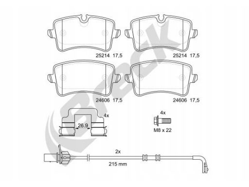 KLOCEK HAMULCOWY KPL. CERAMICZNY TYŁ (Z DODATKAMI, Z PODKŁADKĄ WYTŁUMIAJĄCĄ, ZE ŚRUBAMI PROWADZĄCYMI ZACISKU HAMULCOWEGO), PASUJE DO: AUDI A4 B8, A5, A6 ALLROAD C7, A6 C7, A7, A8 D4 1.8-4.2D 11.09-