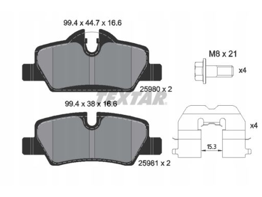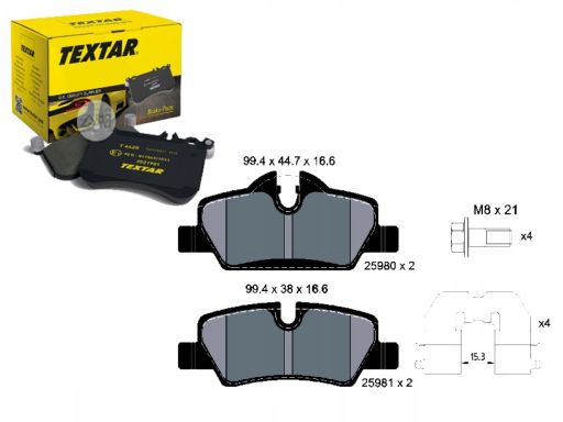 KLOCEK HAMULCOWY KPL. TYŁ (Z DODATKAMI, ZE ŚRUBAMI PROWADZĄCYMI ZACISKU HAMULCOWEGO), PASUJE DO: MINI (F55), (F56), (F57) 1.2-2.0D 09.13-
