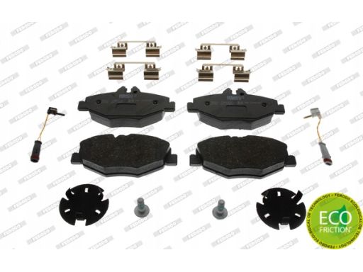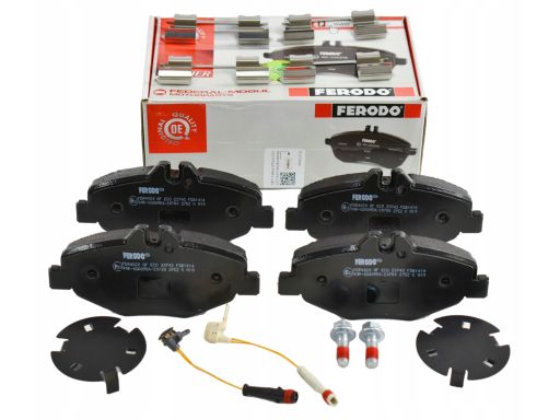 KLOCEK HAMULCOWY KPL. PRZÓD (Z DODATKAMI, ZE ŚRUBAMI PROWADZĄCYMI ZACISKU HAMULCOWEGO), PASUJE DO: MERCEDES CLS (C219), E T-MODEL (S211), E (VF211), E (W211) 1.8-3.5 03.02-12.10