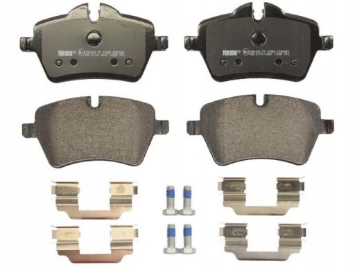 KLOCEK HAMULCOWY KPL. PRZÓD (Z ZAMKIEM, ZE ŚRUBAMI PROWADZĄCYMI ZACISKU HAMULCOWEGO), PASUJE DO: MINI (R50, R53), (R52), (R56), (R57), (R58), (R59), CLUBMAN (R55) 1.4-2.0D 06.01-10.16