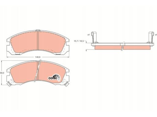 KLOCEK HAMULCOWY KPL. PRZÓD , PASUJE DO: CITROEN C-CROSSER, C-CROSSER ENTERPRISE, MITSUBISHI 3000 GT, ECLIPSE I, ECLIPSE II, ECLIPSE III, GALANT VI, GALANT VII, GALANT VIII, L200 2.0-3.5 01.83-