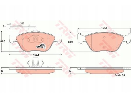 KLOCEK HAMULCOWY KPL. PRZÓD , PASUJE DO: ALFA ROMEO 145, 146, 156, GTV, SPIDER, FIAT BRAVO I, COUPE, MAREA, MULTIPLA, STRADA, LANCIA DEDRA, DELTA II, LYBRA 1.3D-3.0 06.93-