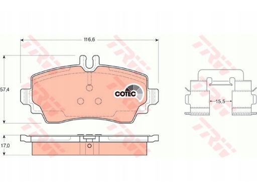 KLOCEK HAMULCOWY KPL. PRZÓD (Z DODATKAMI, ZE ŚRUBAMI PROWADZĄCYMI ZACISKU HAMULCOWEGO), PASUJE DO: MERCEDES A (W168) 1.4/1.6/1.7D 07.97-08.04