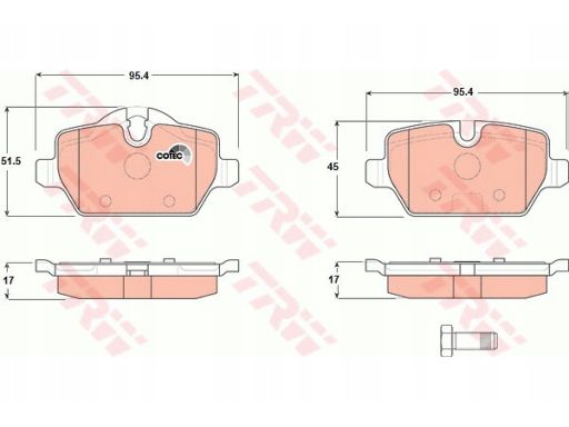 KLOCEK HAMULCOWY KPL. TYŁ (Z DODATKAMI, ZE ŚRUBAMI PROWADZĄCYMI ZACISKU HAMULCOWEGO), PASUJE DO: BMW 1 (E81), 1 (E87), 1 (F20), 3 (E90), 3 (E92), MINI COUNTRYMAN (R60) 1.6-2.0D 06.04-10.16