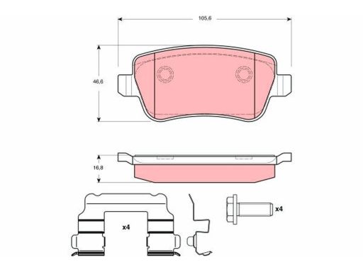 KLOCEK HAMULCOWY KPL. TYŁ (Z DODATKAMI, ZE ŚRUBAMI PROWADZĄCYMI ZACISKU HAMULCOWEGO), PASUJE DO: FIAT CROMA 1.9D/2.4D 06.05-12.11