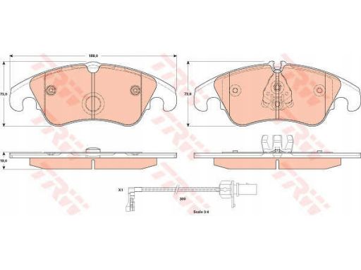 KLOCEK HAMULCOWY KPL. PRZÓD (Z DODATKAMI, ZE ŚRUBAMI PROWADZĄCYMI ZACISKU HAMULCOWEGO), PASUJE DO: AUDI A4 ALLROAD B8, A4 B8, A5, A6 ALLROAD C7, A6 C7, A7, Q5 1.8-4.2 06.07-09.18
