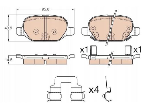 KLOCEK HAMULCOWY KPL. TYŁ (Z DODATKAMI), PASUJE DO: FIAT PANDA 0.9/0.9CNG/1.3D 06.12-