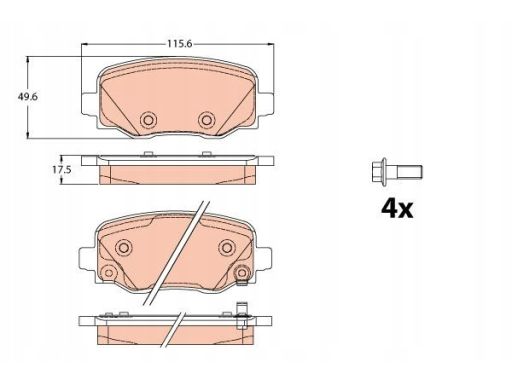 KLOCEK HAMULCOWY KPL. TYŁ (Z DODATKAMI, ZE ŚRUBAMI PROWADZĄCYMI ZACISKU HAMULCOWEGO), PASUJE DO: FIAT 500X, JEEP COMPASS, RENEGADE 1.0-2.0D 07.14-