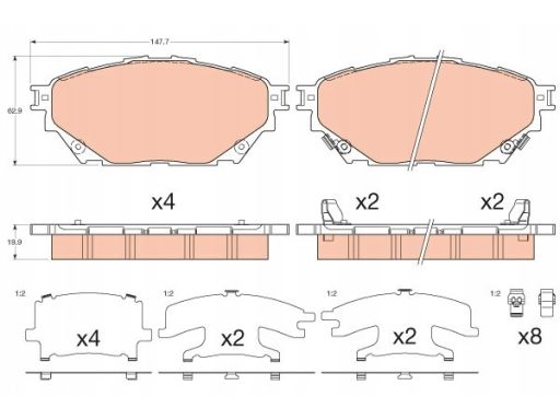 KLOCEK HAMULCOWY KPL. PRZÓD , PASUJE DO: MITSUBISHI CANTER (FB7, FB8, FE7, FE8) VII, CANTER (FE5, FE6) VI, FUSO 12.0D-4.9D 07.86-