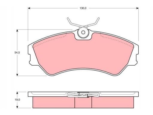 KLOCEK HAMULCOWY KPL. PRZÓD (Z DODATKAMI, ZE ŚRUBAMI PROWADZĄCYMI ZACISKU HAMULCOWEGO), PASUJE DO: VW TRANSPORTER T4 1.8-2.8 07.90-06.03