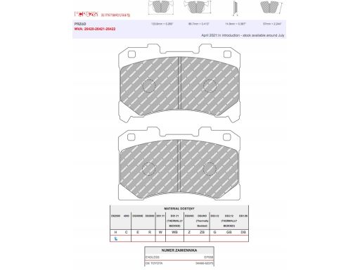 KLOCKI HAMULCOWE WYCZYNOWE DSUNO BEZ HOMOLOGACJI NA ULICĘ, PRZÓD, PASUJE DO: TOYOTA YARIS 1.6 02.20-