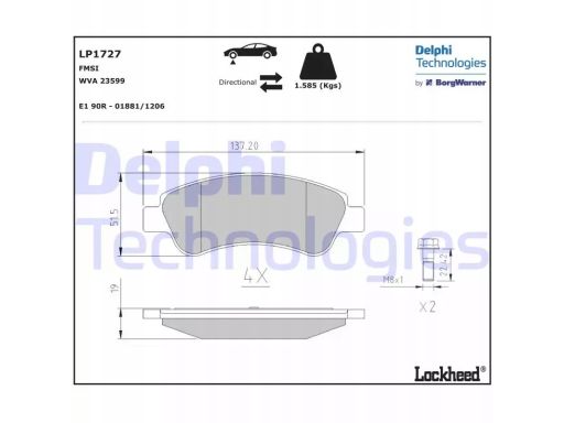 KLOCEK HAMULCOWY KPL. PRZÓD , PASUJE DO: DS DS 3, CITROEN BERLINGO, BERLINGO/MINIVAN, C2, C3 / C3 ORIGIN III, C3 AIRCROSS II, C3 I, C3 II, C3 III, C3 PICASSO, C4, C4 CACTUS 1.0-ELECTRIC 06.96-