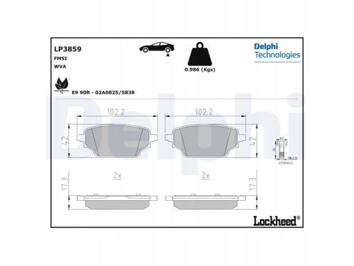 KLOCEK HAMULCOWY KPL. TYŁ (BEZ DODATKÓW, Z PODKŁADKĄ WYTŁUMIAJĄCĄ), PASUJE DO: MERCEDES CITAN TOURER (W420), CITAN/MINIVAN (W420), T (MPV), NISSAN TOWNSTAR, TOWNSTAR/MINIVAN 1.3-ELECTRIC 05.21-