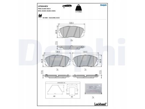 KLOCEK HAMULCOWY KPL. PRZÓD (DO SAMOCHODÓW ELEKTRYCZNYCH, Z DODATKAMI, Z PODKŁADKĄ WYTŁUMIAJĄCĄ), PASUJE DO: HYUNDAI KONA, KONA/SUV, KIA NIRO I, SOUL II ELECTRIC 09.14-