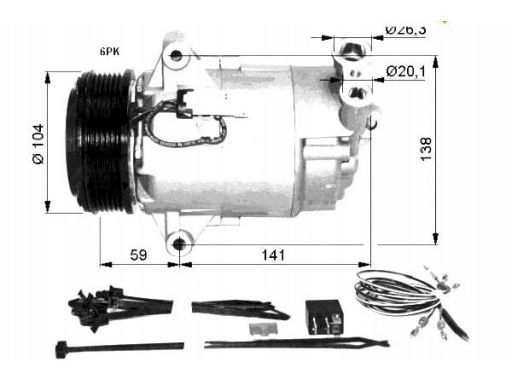 KOMPRESOR KLIMATYZACJI PASUJE DO: OPEL ASTRA H, ASTRA H GTC, ASTRA H/KOMBI, ZAFIRA B, ZAFIRA B/MINIVAN 1.9D 04.04-04.15