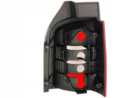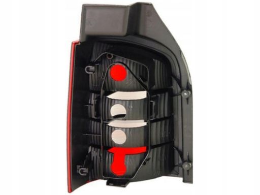 LAMPA TYŁ P (P21/4W/P21W, KOLOR KIERUNKOWSKAZU BIAŁY, KOLOR SZKŁA CZERWONY/PRZEZROCZYSTY, ZE ŚWIATŁEM PRZECIWMGIELNYM, ZE ŚWIATŁEM COFANIA, WERSJA Z KLAPĄ TYLNĄ) PASUJE DO: VW TRANSPORTER T5 04.03-04.