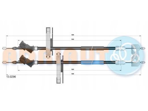 LINKA HAMULCA RĘCZNEGO ŚRODEK/TYŁ L/P (1480MM/1320MM/1480MM/1320MM) PASUJE DO: FORD FOCUS I, FOCUS I/KOMBI 1.4-2.0 08.98-03.05