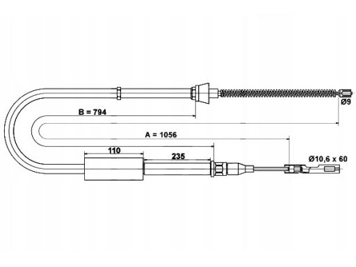 LINKA HAMULCA RĘCZNEGO TYŁ L (1056MM) PASUJE DO: AUDI A2 1.2D/1.4/1.4D 02.00-08.05