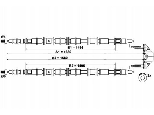 LINKA HAMULCA RĘCZNEGO TYŁ L/P (1680MM/1680MM) PASUJE DO: OPEL ZAFIRA A 1.6-2.2D 04.99-06.05