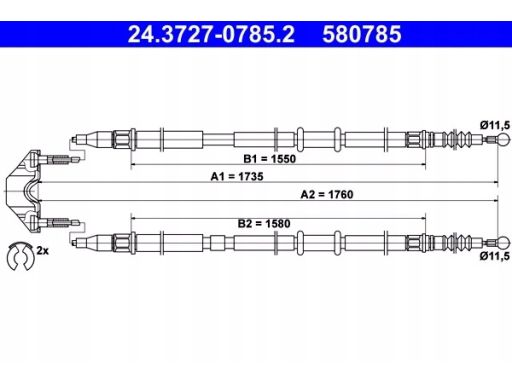 LINKA HAMULCA RĘCZNEGO TYŁ L/P (1735MM/1760MM) PASUJE DO: OPEL ASTRA H, ASTRA H CLASSIC, ASTRA H/KOMBI 1.3D-2.0 03.04-