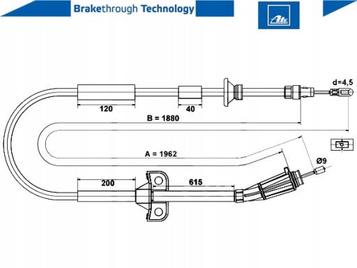 LINKA HAMULCA RĘCZNEGO TYŁ L/P (1962MM) PASUJE DO: VOLVO V70 II 2.0-2.5D 11.99-12.08