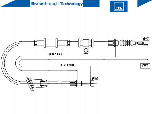 LINKA HAMULCA RĘCZNEGO TYŁ L (1588MM) PASUJE DO: MITSUBISHI CARISMA 1.3-1.9D 05.95-06.06