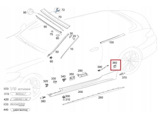 Spinka listwy progowej Mercedes W205 C Coupenr części : A0029910971Nowy oryginał Mercedes
